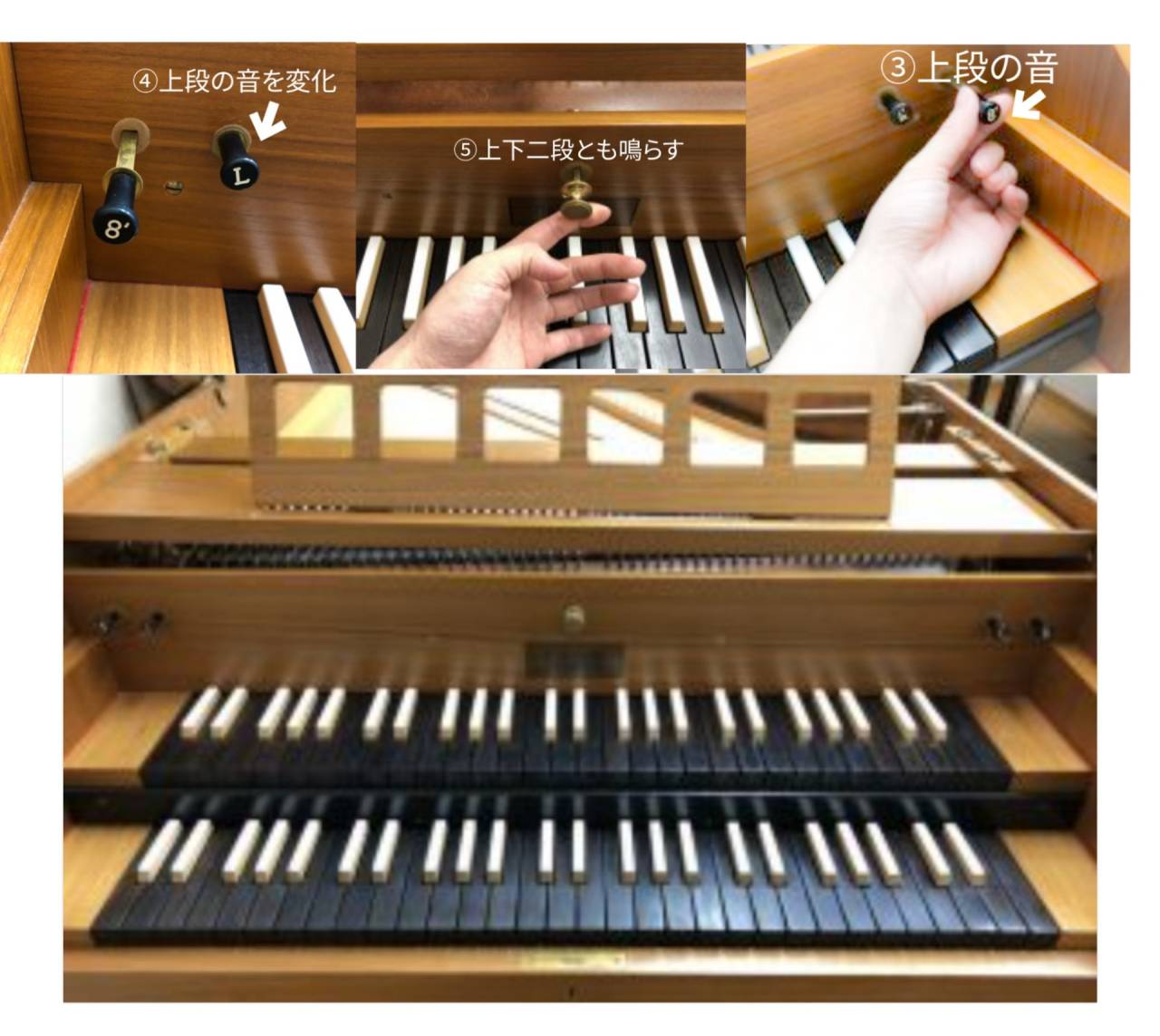 ⑤上下の鍵盤の音を同時に出す