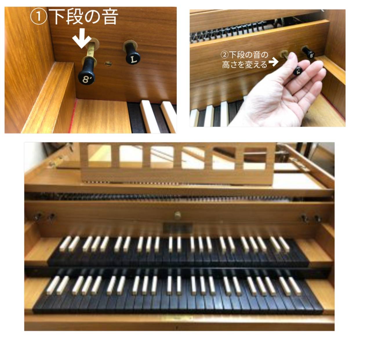 下段と同様、右側の「8’」のレバーを引けば