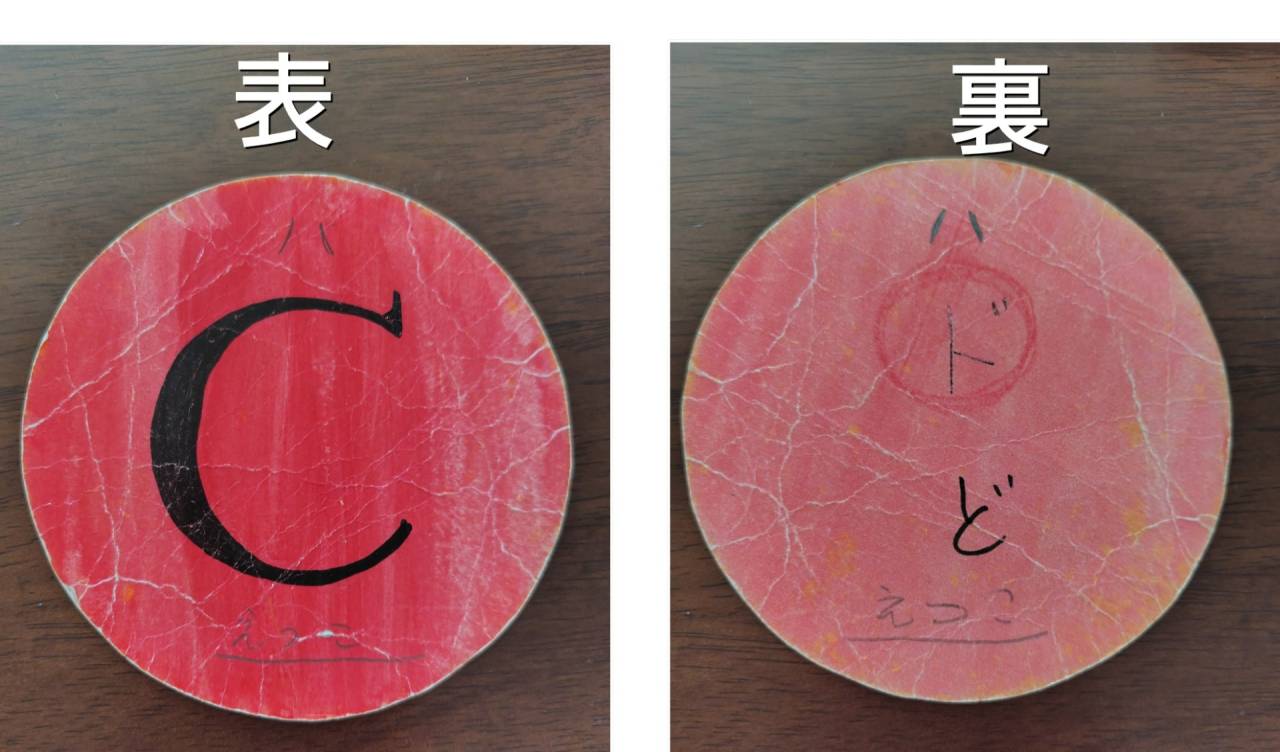 カードの表は「ドレミ」、裏は「ABC」になっています。