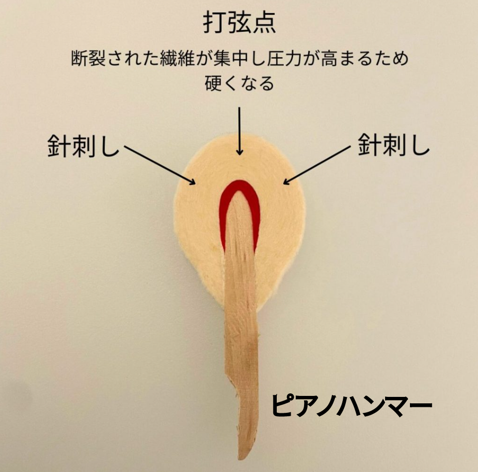 フェルトを柔らかくすることで音色を柔らかくしますが