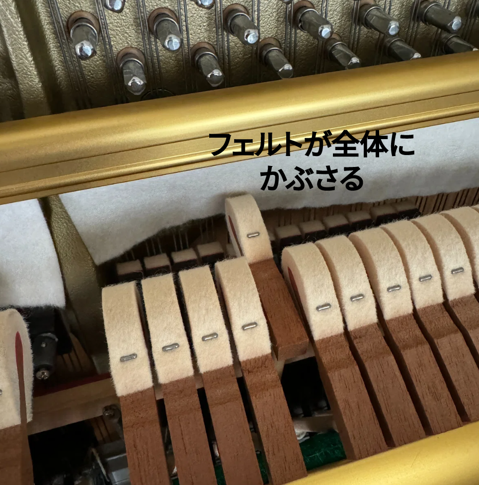 アップライトは弱音ペダルを踏むとフェルト生地が