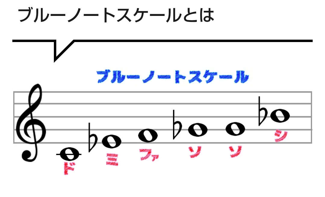 ブルーススケールはド・ミ♭・ファ・ソ♭・ソ・シ♭・ドです。